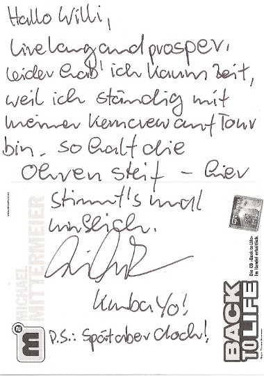 Rückseite der Autogrammkarte von Michael Mittermeier