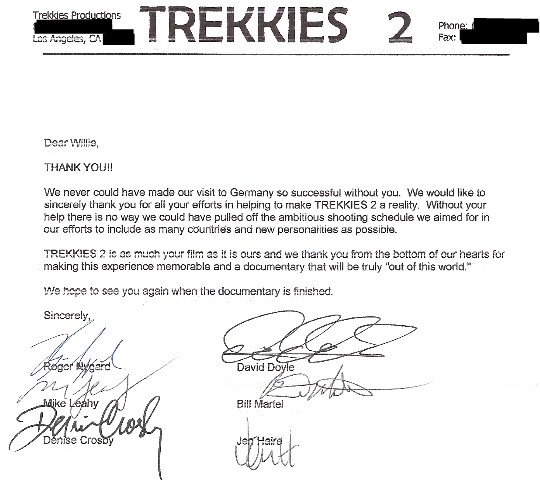 Ein Dankesbrief der "Trekkies 2" - Produktion